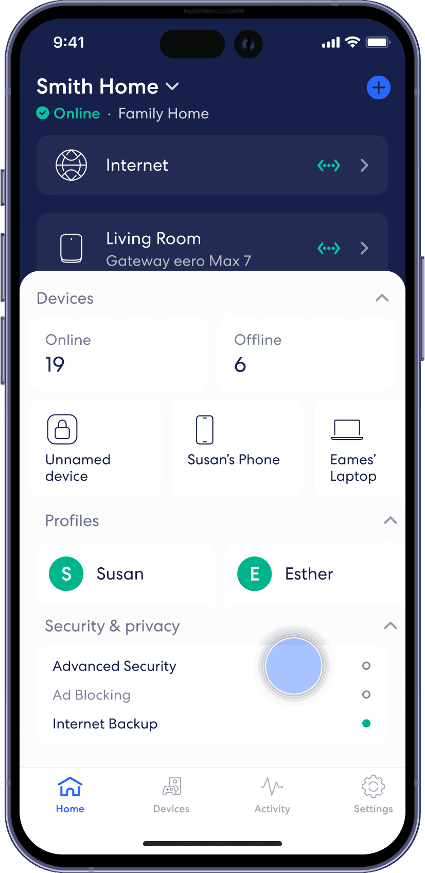 Turn on Advanced Security from the home tab in your eero mobile app.