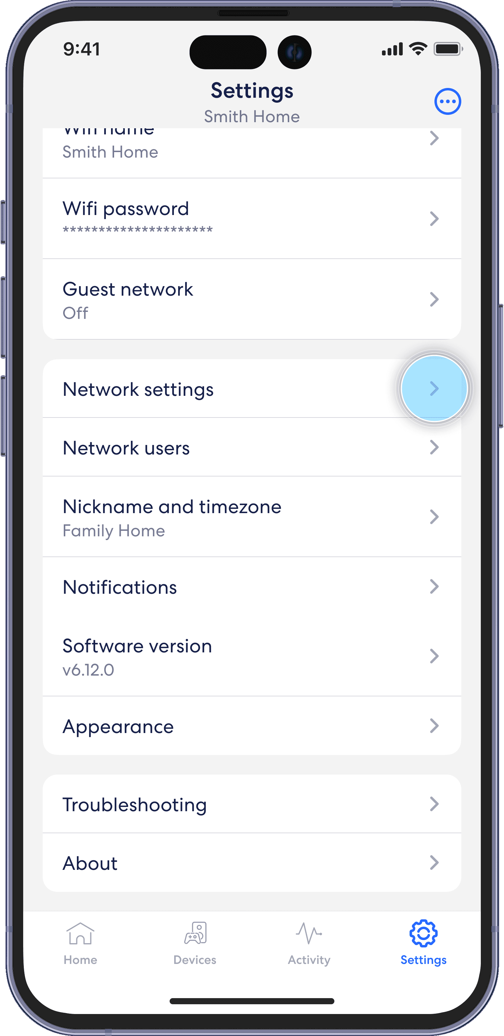 Once logged in, toggle eero Built-in on. You can also choose which devices you would like enabled.