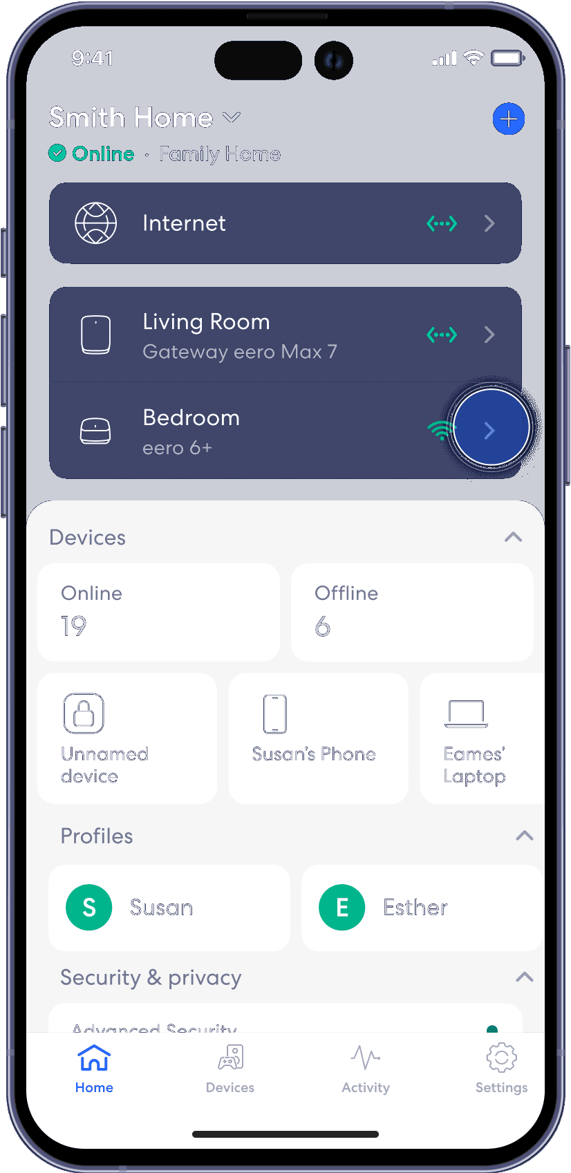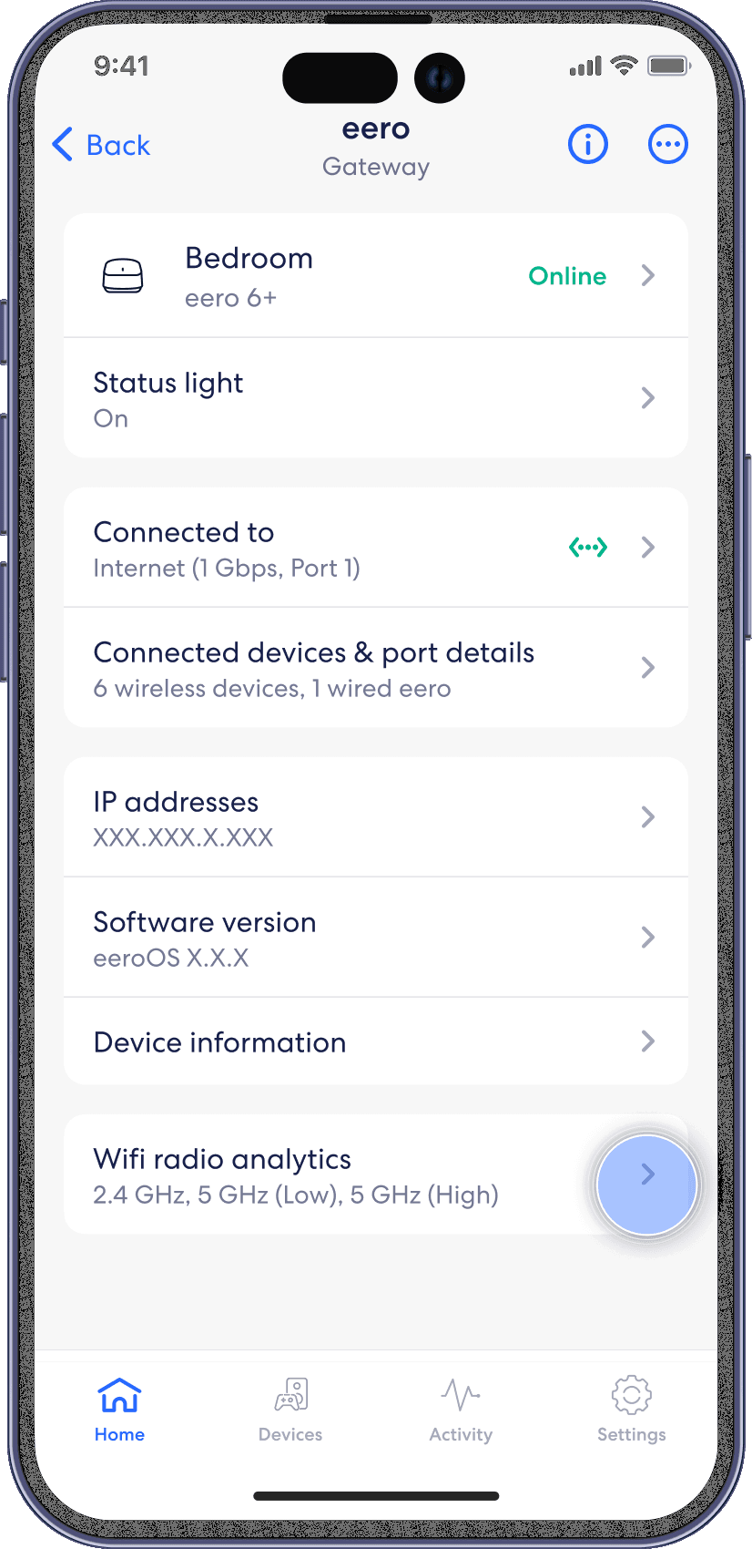 From the Home tab, tap on one of your eero devices to go to the eero details page.