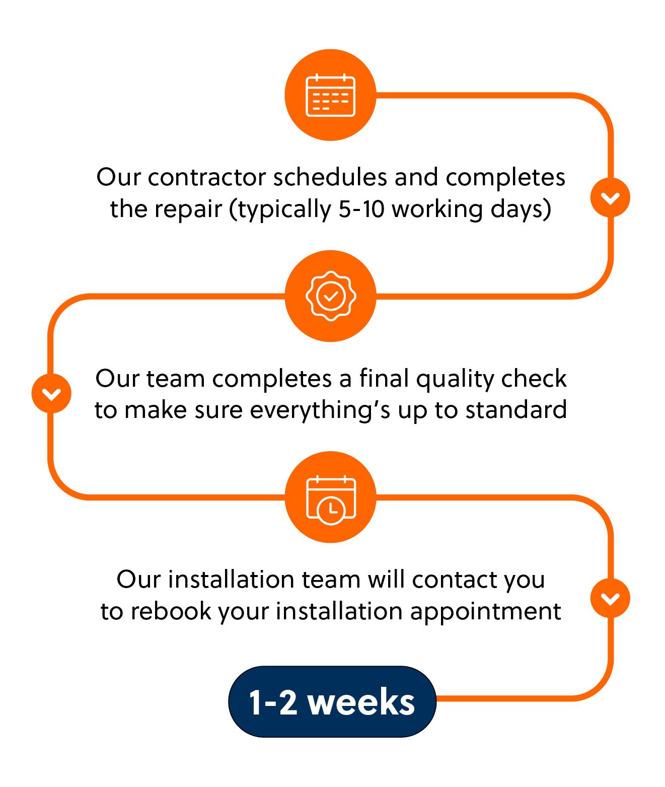 Once your fix is approved our contractor will schedule and complete the remediation works within 5-10 working days, before our team carries out a final quality check and hands you back to the installation team to rebook your appointment.